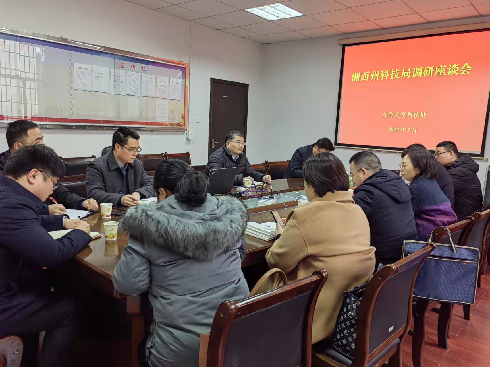 2月14日上午,湘西州科技局局长田小雨、副局长翁立志、省科技厅成果处四级调研员陈海兵等一行九人来我校调研,调研会在政务中心212会议室举行,科技处汤自军、杨正华、彭胜等参加调研会。
