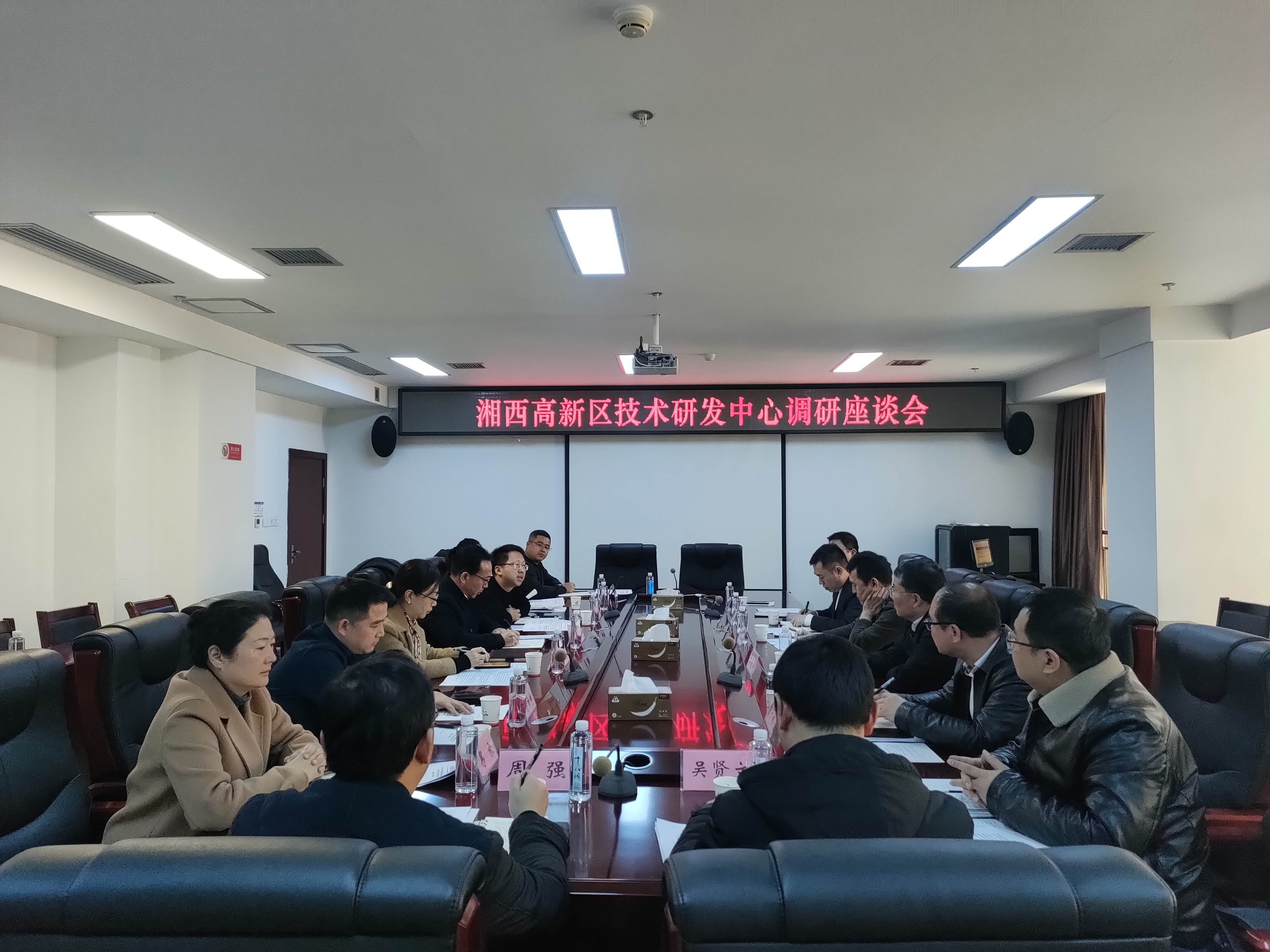 考察座谈会在湘西高新区管委会举行,湘西州科技局局长田小雨、高新区管委会主任戴晓军及相关部门企业代表参加座谈。田小雨介绍了湘西高新区创建国家级高新区的进展情况,指出高级别科研平台、高层次科技创新人才在国家高新区创建中所发挥的重要作用,希望通过“招才引智”的方式助力湘西国家高新区的创建。中科微槽群(北京)节能技术开发有限公司董事长胡学功介绍了公司的技术特点及研发优势,提议校地企合作共建技术研发中心。我校科研处处长汤自军结合国家及上级科技政策,探讨了共同建立新型研发机构的多种可行模式,并希望我校在科技成果转化、科技人员创新创业、科技企业孵化等方面得到湘西州及高新区的大力支持。戴晓军表示在湘西高新区创建国家级高新区的关键时期,欢迎高校、企业到高新区设立研发中心,欢迎广大科技人员到高新区创新创业、进行科技成果转化,高新区将在场地设施及人才政策等方面给予优惠。