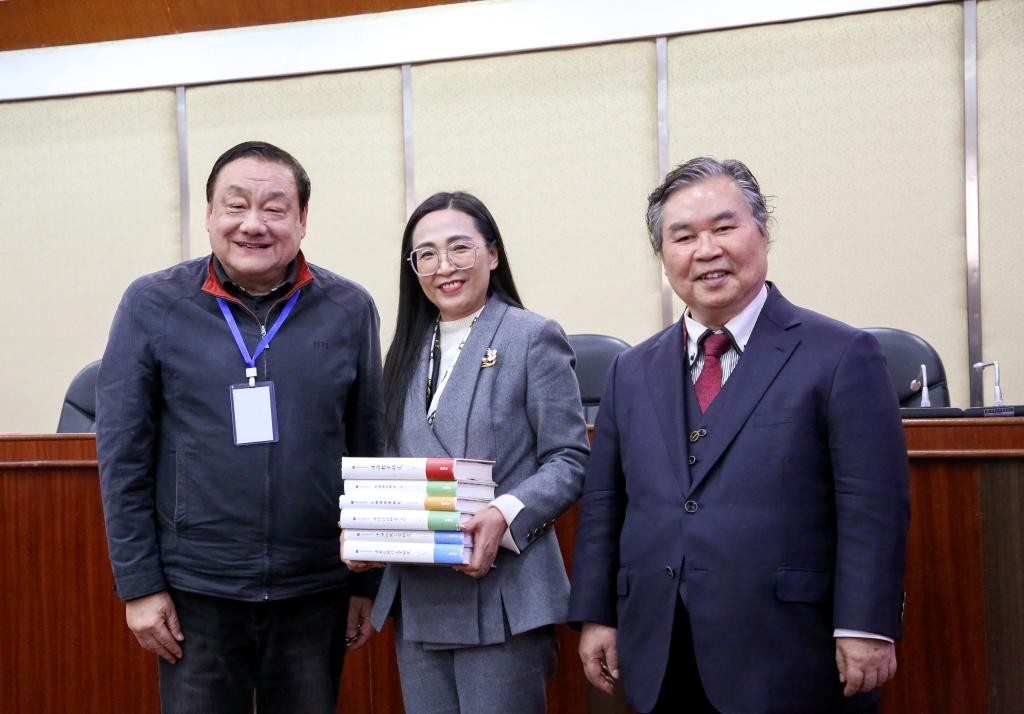 论坛结束前还举行了赠书仪式,中国人民大学张威教授还代表《日本学研究丛书》编委会为我校赠送《日本学研究丛书》已经出版的图书,北京外国语大学徐一平教授赠送其新出版的学术著作《现代中国日语教育史》,北京大学滕军教授赠送了一套教学光盘。《日本学研究丛书》由外语教学与研究出版社出版,荟集国内外日本学研究的精粹,目前已经出版《日本近现代文学研究》《中日比较文学研究》《日语语法研究(上下)》《日语语用学研究》《日语教学研究》6卷。该系列丛书以其权威性、系统性、前沿性备受学界关注,丛书付梓发售之际,我校成为国内获齐书卷的首家高校。获赠的学术著作必将对我校日本学研究提供强有力支持。