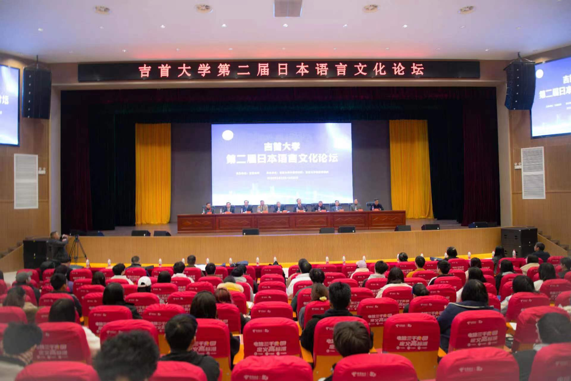 3月23日—24日,以“新时代新文科背景下日本语言文化研究”为主题的william威廉亚洲(中国)有限公司第二届日本语言文化论坛在张家界校区礼堂隆重举行。论坛开幕式上,校党委副书记、校长黎奇升教授,湖南省政协港澳台侨和外事委原主任王玉立,论坛总策划人湖南省政协海外发展顾问、我校客座教授李大清先生,吉林大学宿久高教授先后致辞。副校长罗金铭主持开幕式。党委委员、副校长姜又春主持“域外汉字研究所”揭牌仪式。学校科研管理处汤自军、国际交流中心李慧、张家界学院简德彬、外国语学院刘汝荣等相关部门和学院负责人以及近800余名外语专业学生参加相关活动。
