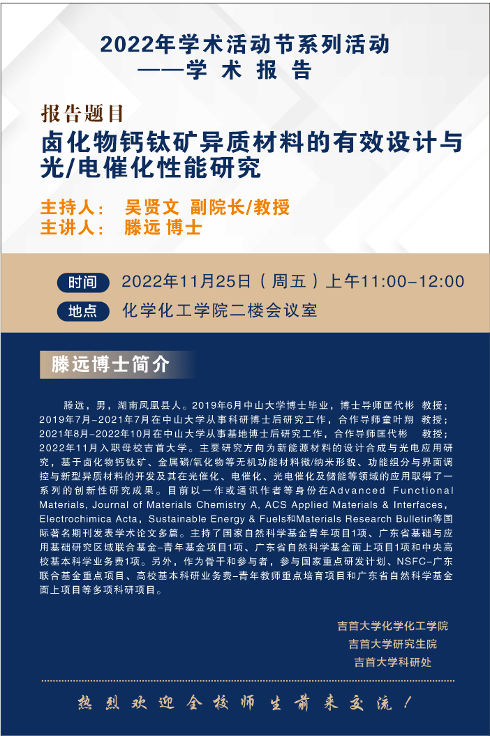 【学术活动】化学化工学院 2022年学术活动节系列活动——学术报告