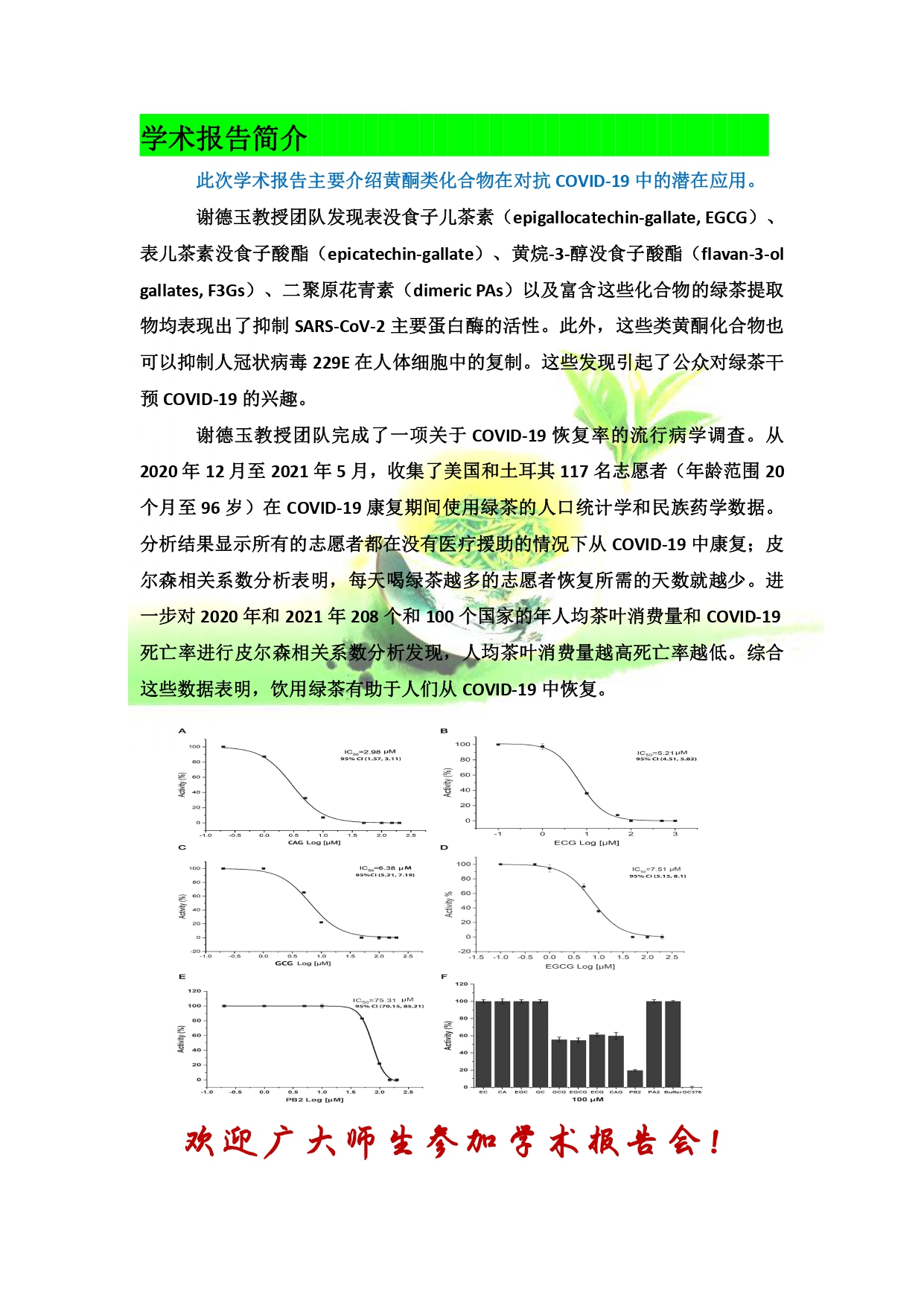 【学术报告】生物资源与环境科学学院 基于类黄酮物质抑制SARS-CoV-2主蛋白酶活和人冠状病毒229E复制对抗新冠肺炎的研究