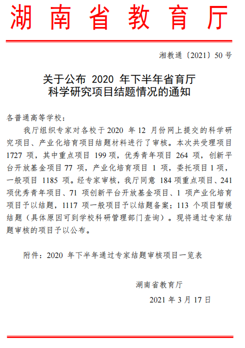 关于2021上半年省教育厅科学研究项目(自科类)结题的通知
