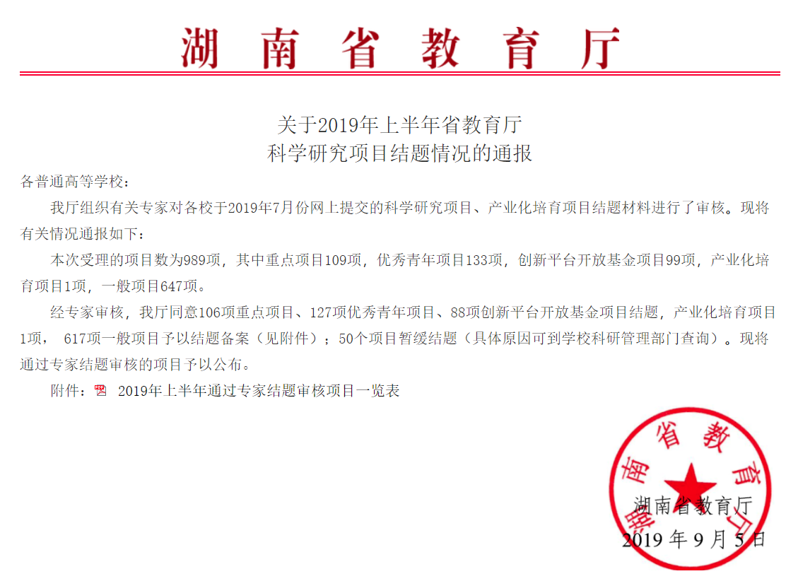 关于2019上半年省教育厅自然科学研究项目结题的通知